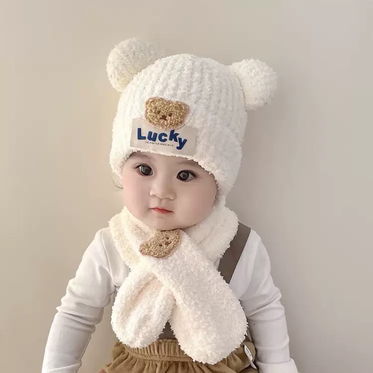 半小時前嬰兒帽子秋冬季可愛小熊寶寶毛絨護耳帽圍巾套裝保暖男女童套頭帽 - 商家推薦95%客戶選擇2入組NT$1199