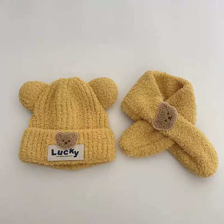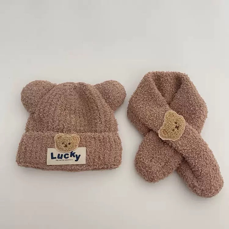 15分鐘前嬰兒帽子秋冬季可愛小熊寶寶毛絨護耳帽圍巾套裝保暖男女童套頭帽 - 商家推薦95%客戶選擇2入組NT$1199