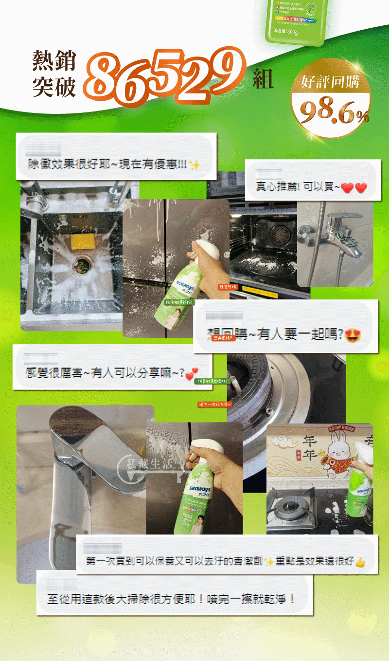 25分鐘前全屋煥然一新日本瘋搶除垢劑【Seaways極效潔垢劑】極效去汙X乾淨透亮 - 極效潔垢劑【6入】再享免運!