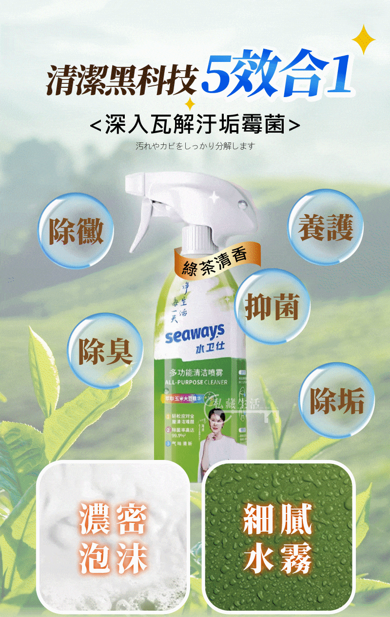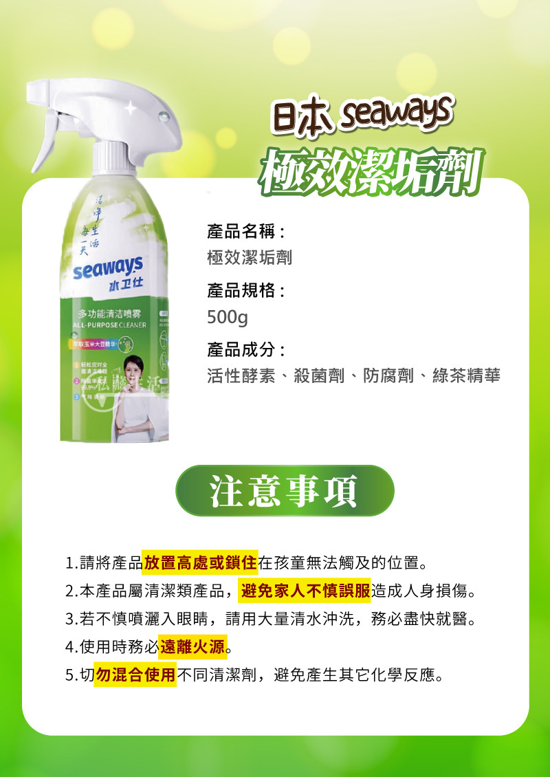 5分鐘前全屋煥然一新日本瘋搶除垢劑【Seaways極效潔垢劑】極效去汙X乾淨透亮 - 極效潔垢劑【6入】再享免運!
